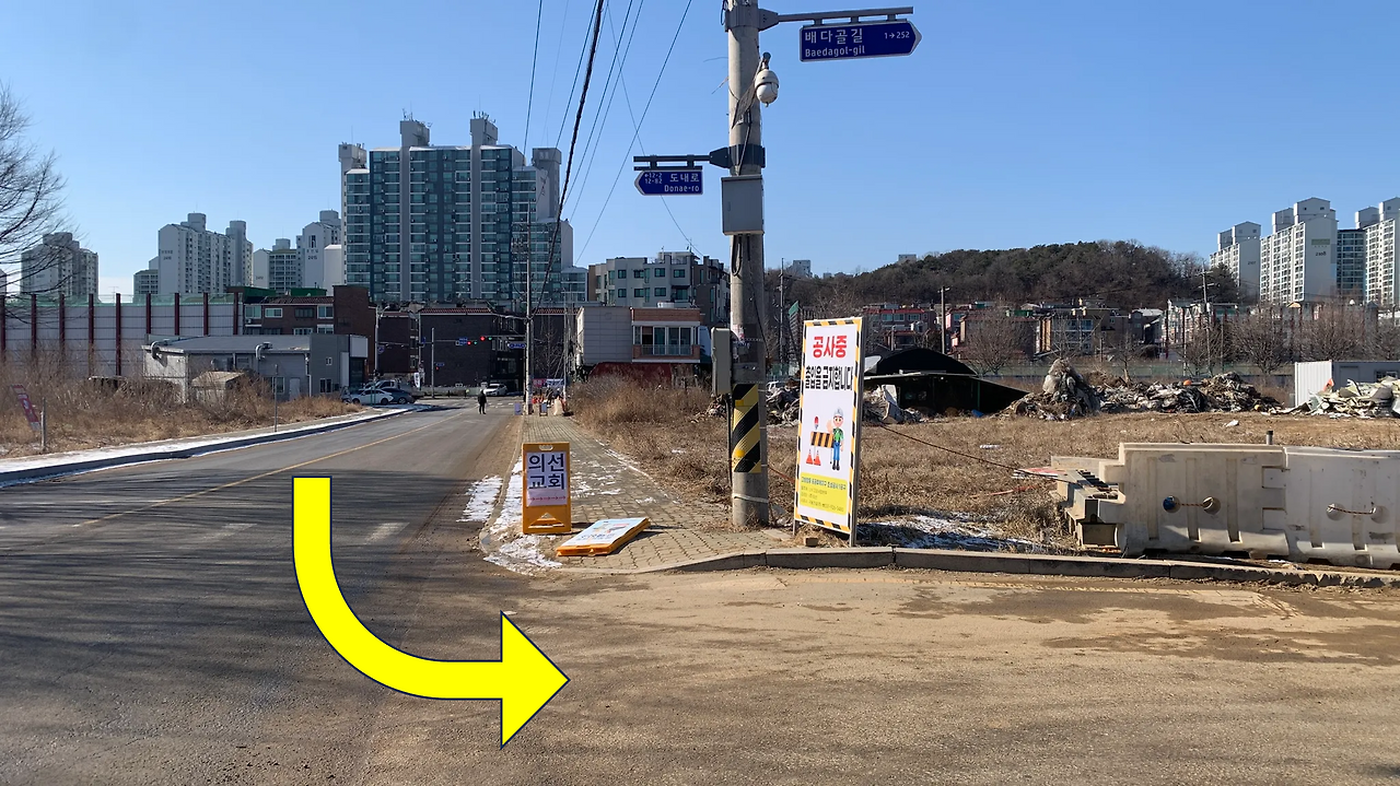 (*티맵이나 카카오네비 기준입니다, 네이버지도는 X) - 가람교에서 진입 후 30m 직진하신 다음 건설사 현수막 앞에서 좌측으로 들어오시기 바랍니다.