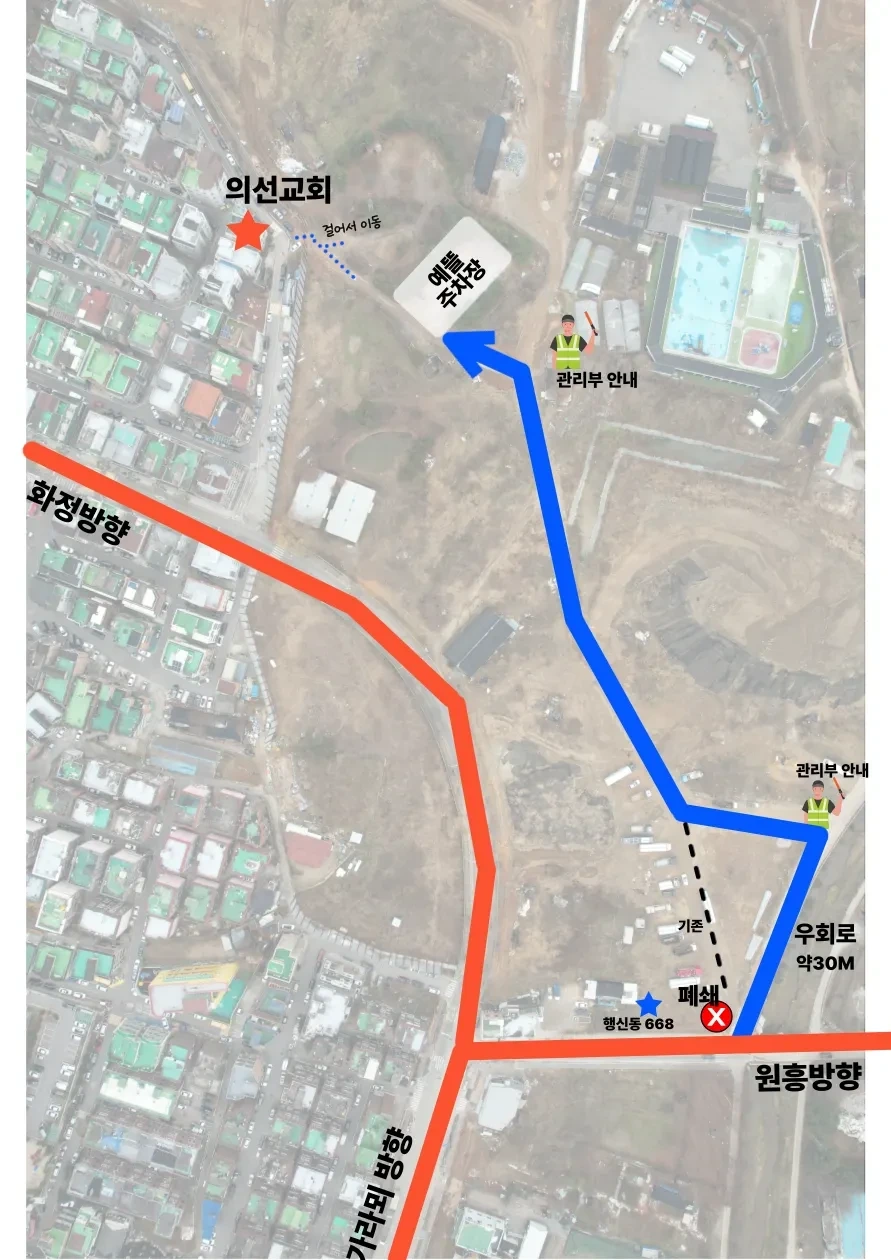 GS25편의점-가람3교 구간(화은교회 및 영흥빌라 주변도로)에는 주일에 자유롭게 주차가 가능합니다.