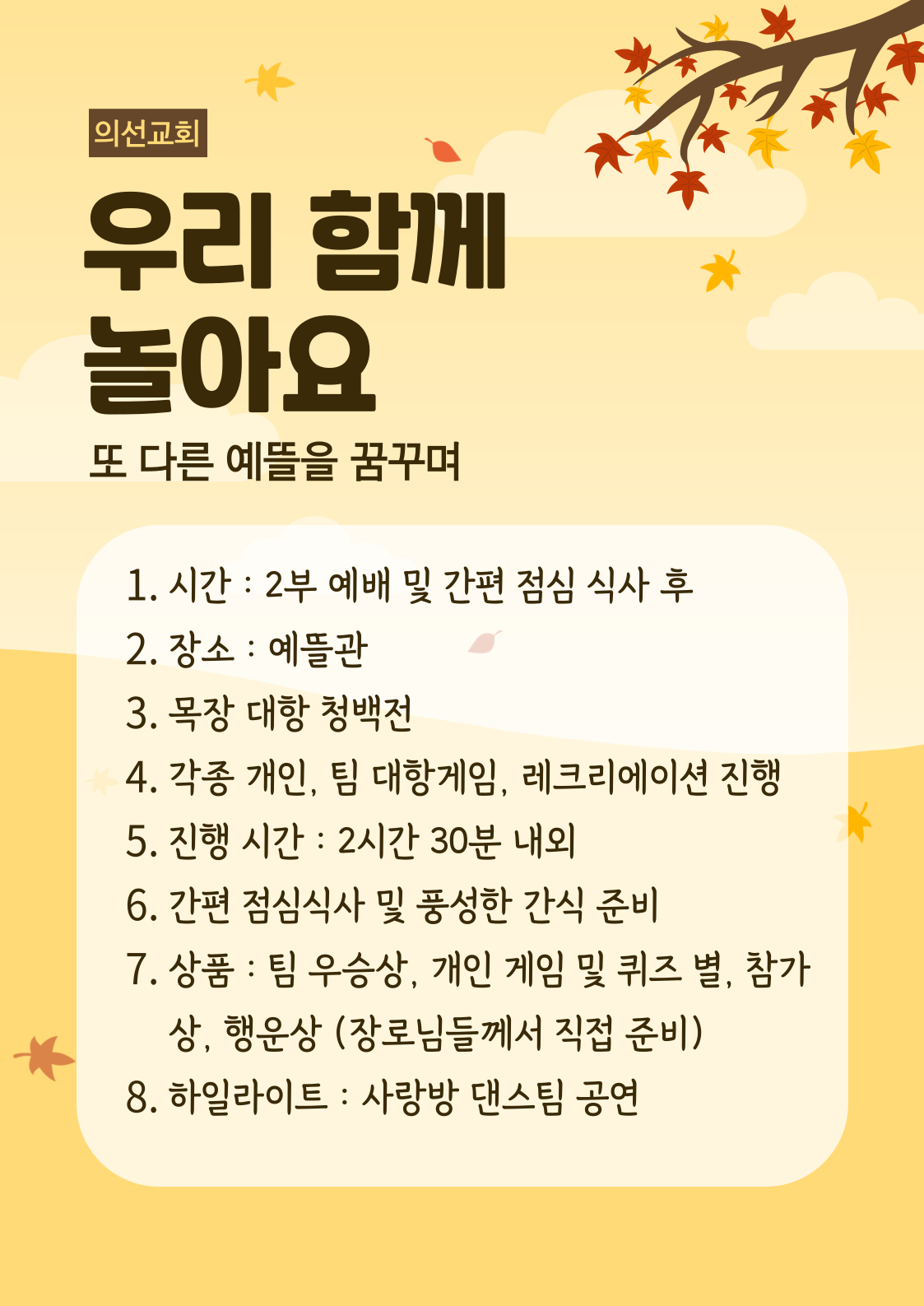 일자 | 2024.09.29일 (주일) 2부 예배 후