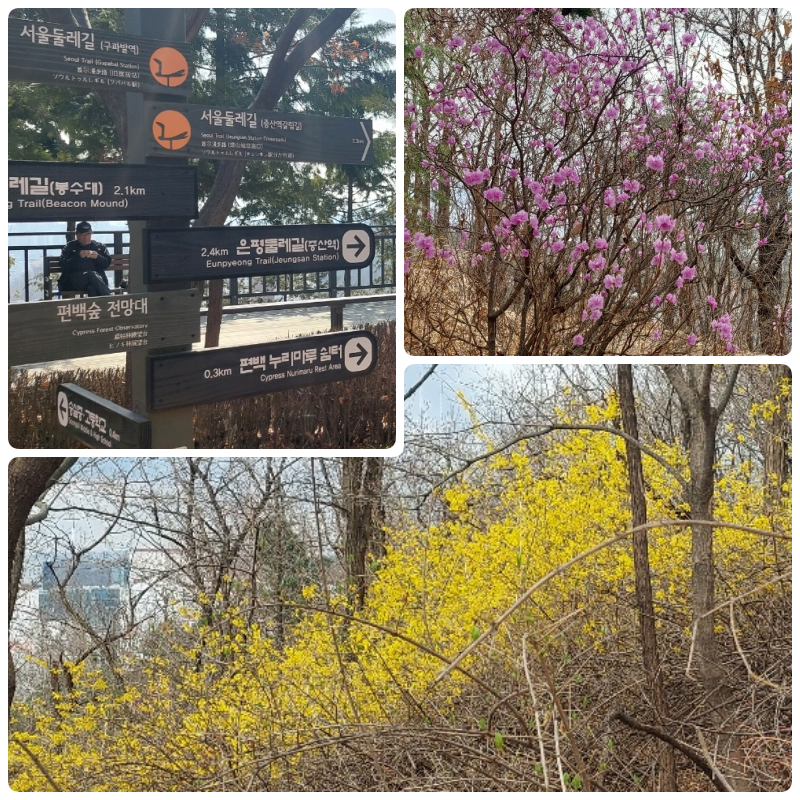 둘레길이라지만 적당한 상승고도에 나무계단이 많이 설치되어 있어서 다리 운동을 꽤 하게 만드는 코스였습니다.